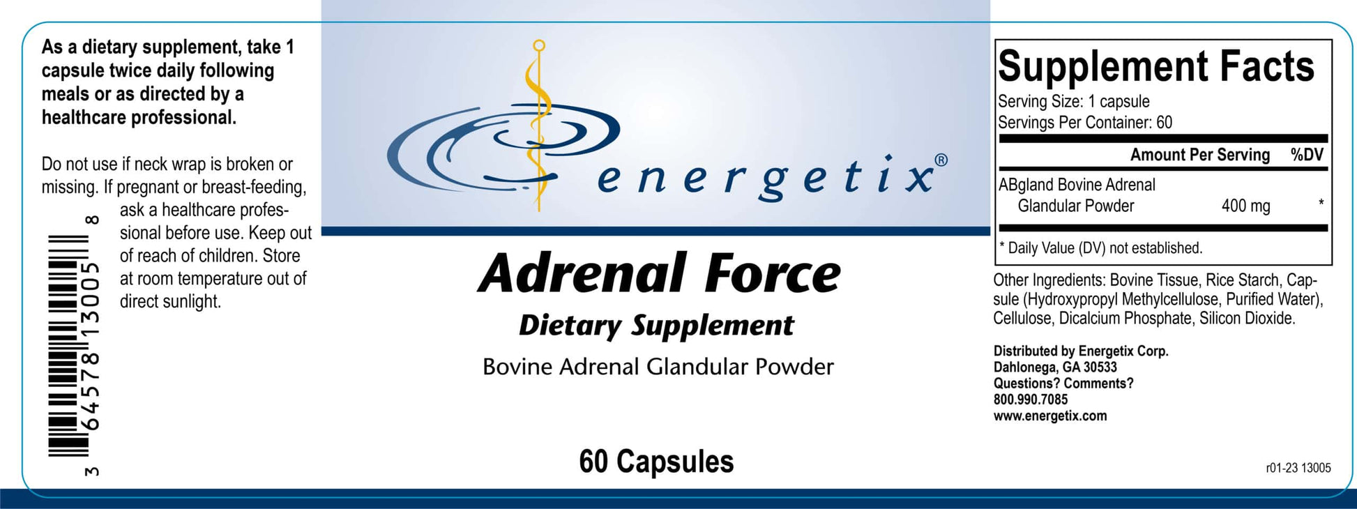 Adrenal Force is a dietary supplement containing pure, clean sourced, freeze dried adrenal gland from New Zealand grass-fed bovine. This supplement was designed to support healthy adrenal function and normal energy levels.*